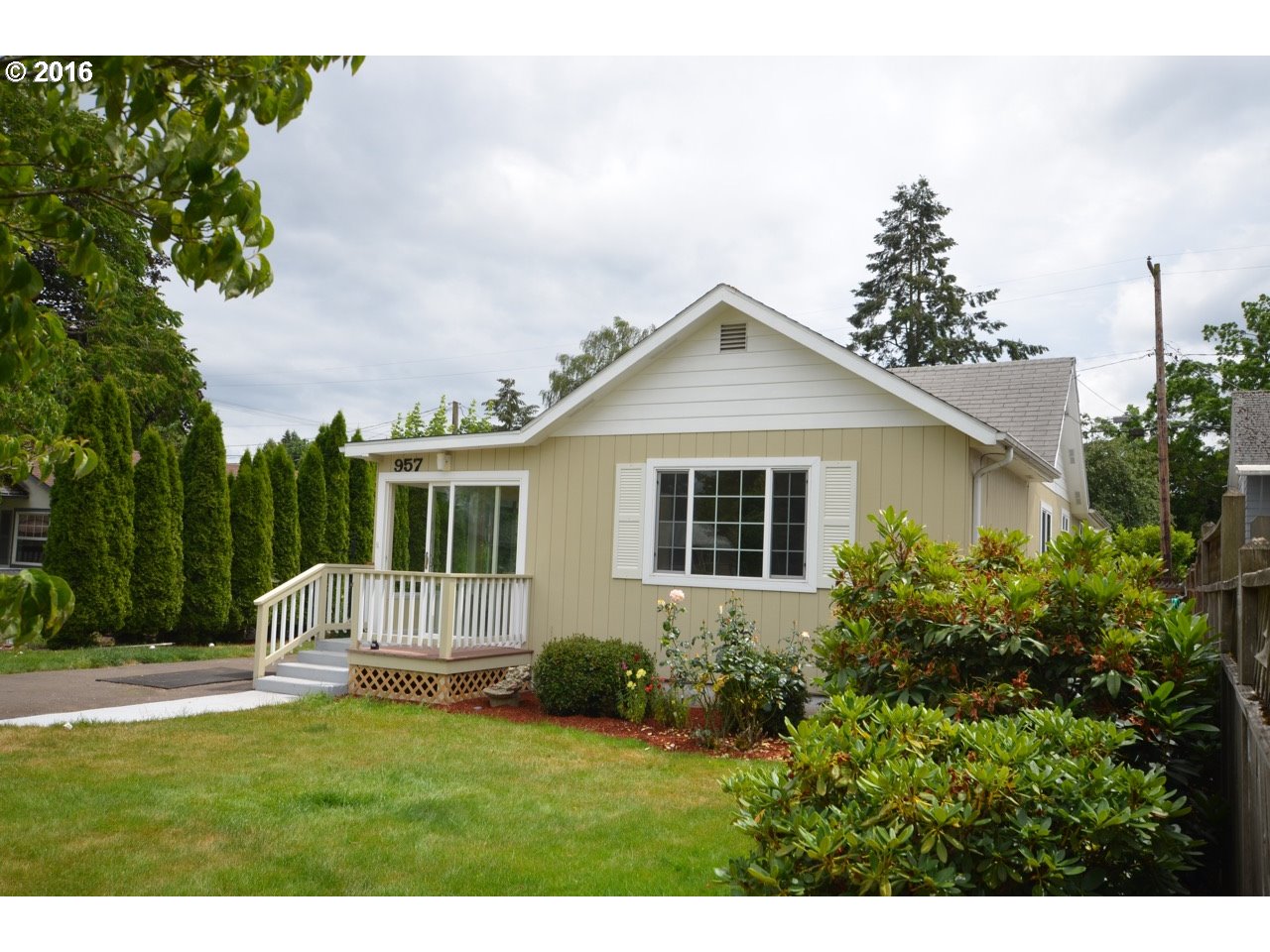 Single Level 3 Bedroom Home for Sale in Desirable Neighborhood of Springfield. Bright tiled entry way welcomes you home through to living room with wood floors and vinyl windows. Kitchen has eat-at-bar, dining area and additional built-ins. Great sized bedrooms with laminate floors and closets. Utility room with storage and shop in back. 2 covered carports with alley access. Fully fenced yard and sprinklers keep grass green year round.